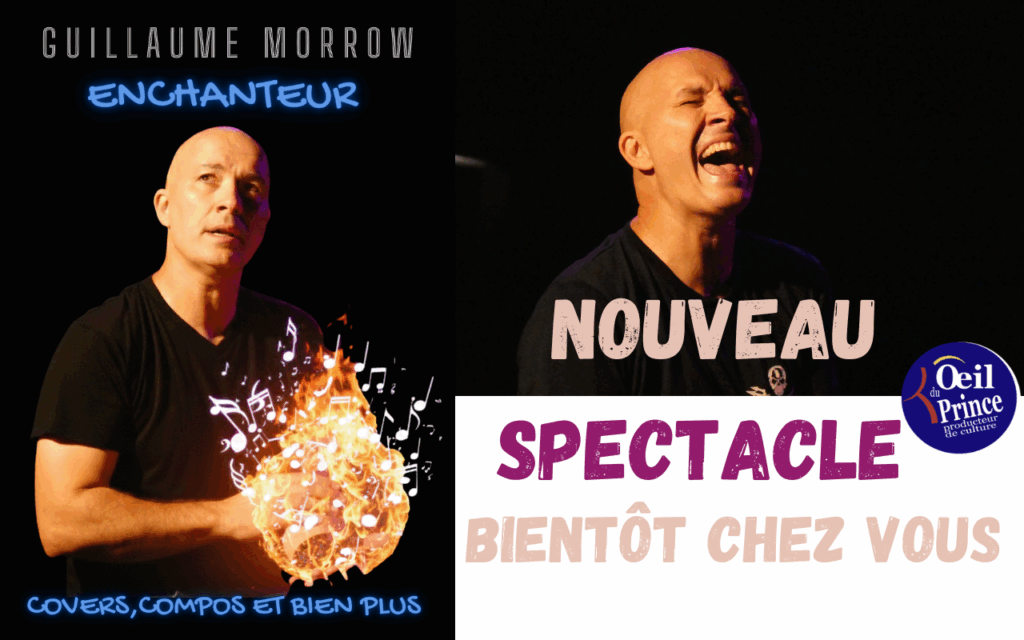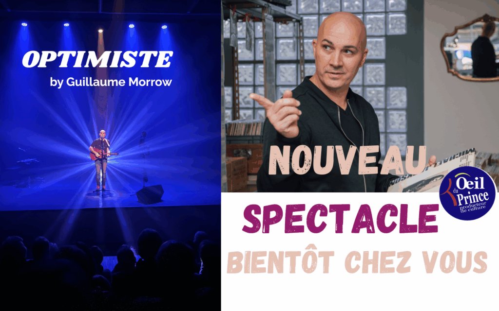 En 2026 Guillaume Morrow arrive avec un spectacle original et surprenant. Un spectacle où la guitare de Guillaume dotée d’intelligence artificielle, prend le micro (ou plutôt les cordes ) pour des échanges hilarants. Entre rires, chansons et improvisations le duo vous embarque pour une soirée unique. Guillaume traverse les genres musicaux et les frontières de l’humour, tout en explorant les possibilités offertes par l’I.A. Optimiste est un spectacle futuriste, phénoménal et farfelue !